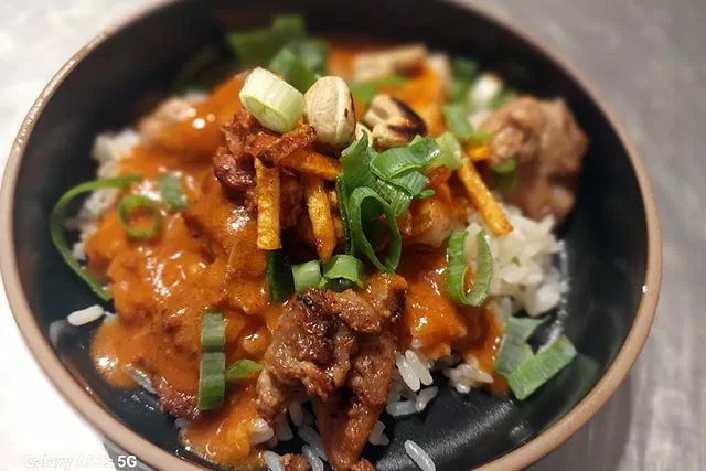 Een zijdezachte crème brûlée met een subtiele hint van steranijs, afgetopt met een krokante gekarameliseerde suikerlaag en geroosterde pecannoten